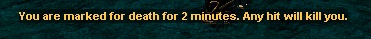 The mark will last for 2 minutes or until the player dies. You will not be able to heal.