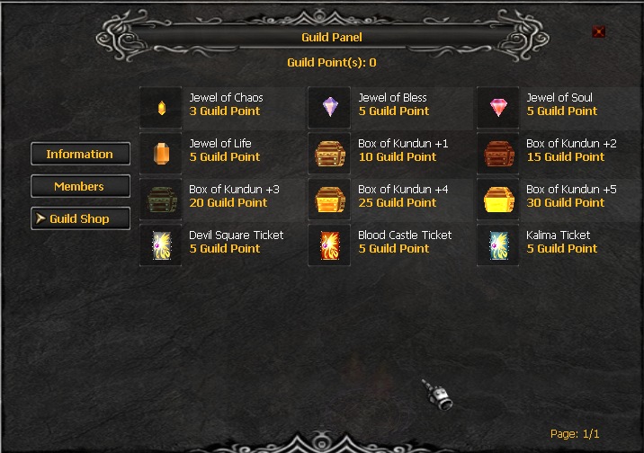 In the Guild Shop tab, only the Guild Master can make purchases using Guild Points.